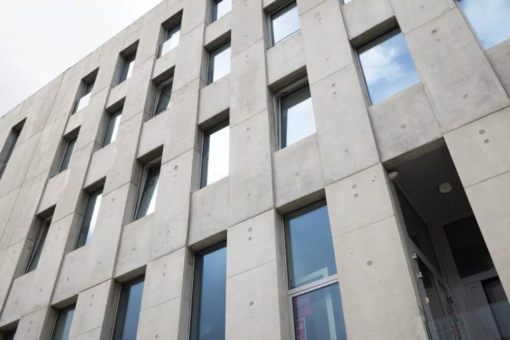 Studenci w ciszy i z zainteresowaniem słuchali jego opowieści, w której beton umożliwił realizację pasji latania. Budynek FLYSPOT w Warszawie, ukończony w 2014 r., a zaprojektowany przez pracownię Lewicki Łatak, zdobył nagrodę główną w konkursie Polski Cement w Architekturze. – Jakość tunelu aerodynamicznego osiąga się wtedy, gdy wyjdzie optymalny kształt. Wszystko musi być dobrze zaprojektowane, żeby nie było jakiś negatywnych efektów. Postanowiłem umieścić technologię w konstrukcji betonowej. To była gigantyczna i ciężka praca. FLYSPOT w Warszawie realizowaliśmy w systemie VARIO. Nie chcąc popełnić pewnych błędów po raz drugi FLYSPOT w Katowicach wybudowaliśmy już w systemie ramowym – mówił Michał Braszczyński.