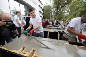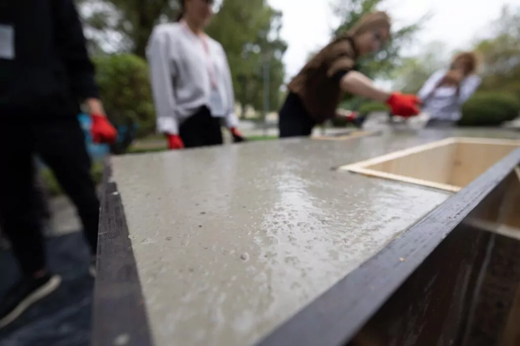 – To najważniejszy moment warsztatów – mówił Zbigniew Pilch, szef marketingu SPC. Widać to było na twarzach uczestników, a gdy mieszanka betonowa zaczęła wypełniać formy, na dziedzińcu Wydziału Inżynierii Materiałowej i Ceramiki rozległy się brawa.