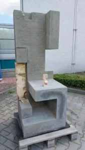Czwartego dnia warsztatów, około godziny 15.20 rozpoczęło się wbudowywanie mieszanki betonowej w przygotowane przez studentów formy.