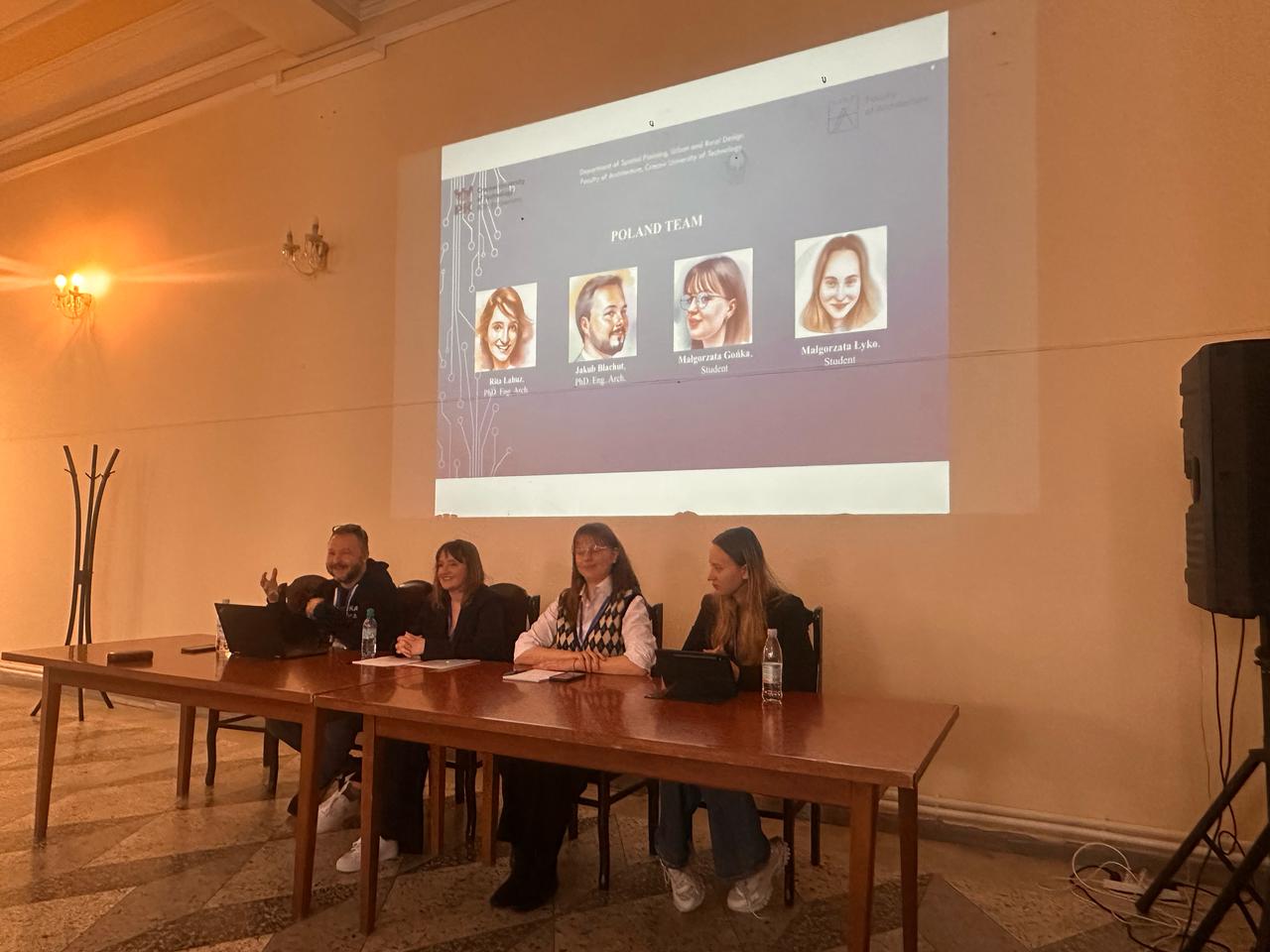 Dzięki uprzejmości Jego Magnificencji Rektora PK Prof. dr hab. inż. Andrzeja Szaraty oraz Pani Dziekan WA PK Prof. dr hab. inż. arch. Magdaleny Kozień-Woźniak naszą uczelnię reprezentował zespół w składzie: studentki Małgorzata Gońka i Małgorzata Łyko oraz ich opiekunowie dr inż. arch. Rita Łabuz i dr inż. arch. Jakub Błachut z Katedry Planowania Przestrzennego, Projektowania Urbanistycznego oraz Ruralistycznego (A-5).