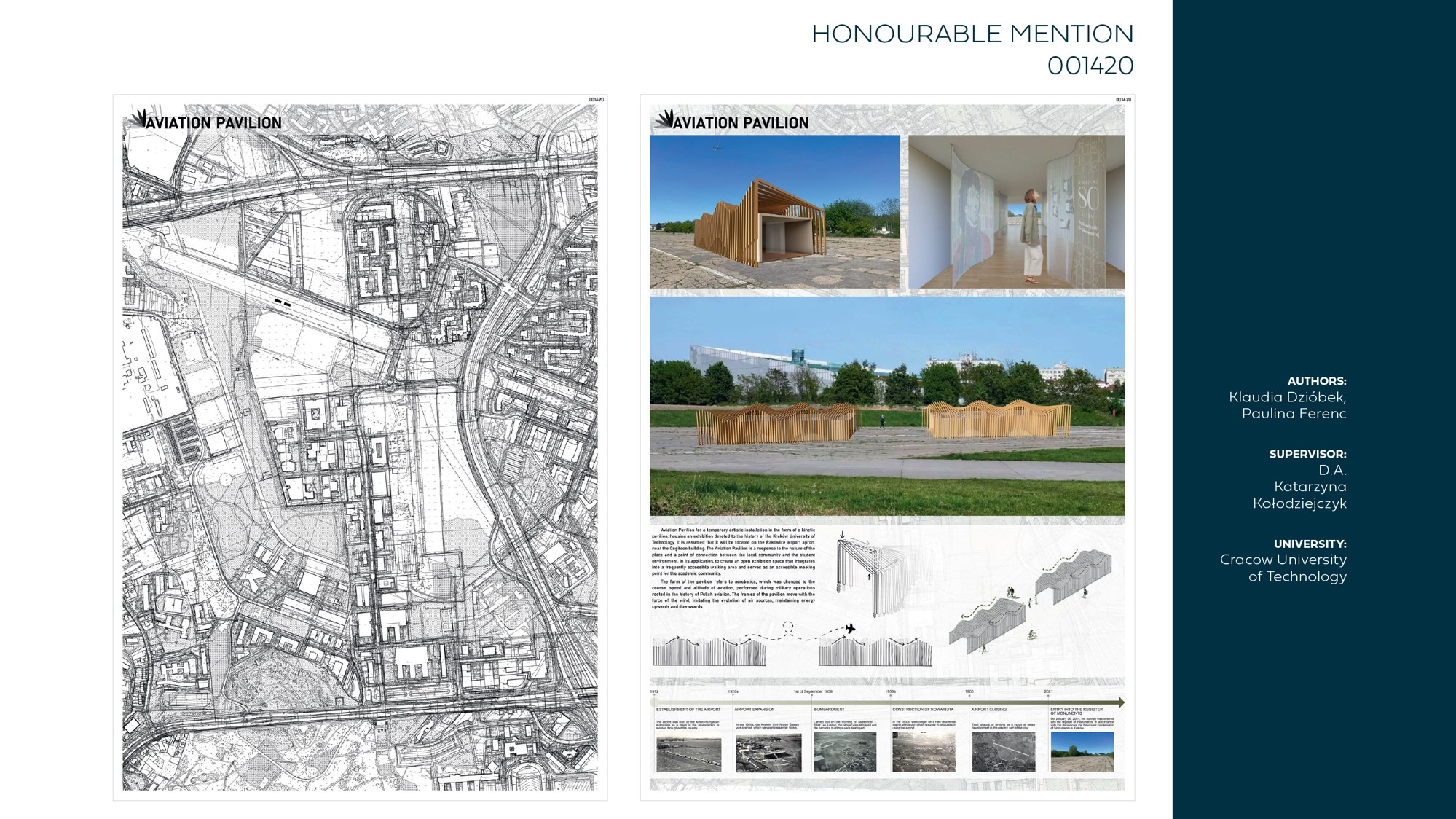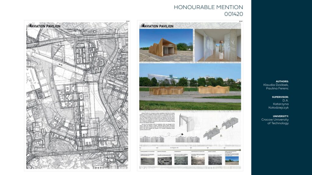 “Aviation Pavilion”, autorki: Klaudia Dziobek, Paulina Ferenc, Politechnika Krakowska Opieka – dr inż. arch. Katarzyna Kołodziejczyk.