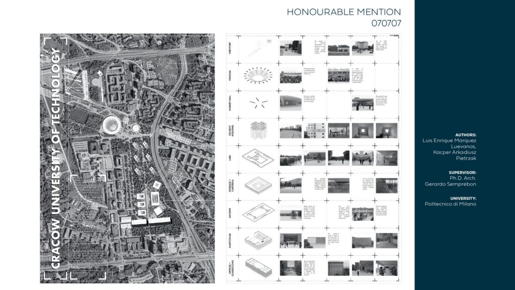 “Cracow University of Technology”, autorzy: Luis Enrique Marquez Luevanos, Kacper Arkadiusz Pietrzak, Politecnico di Milano. Opieka – PhD arch. Gerardo Semprebon.