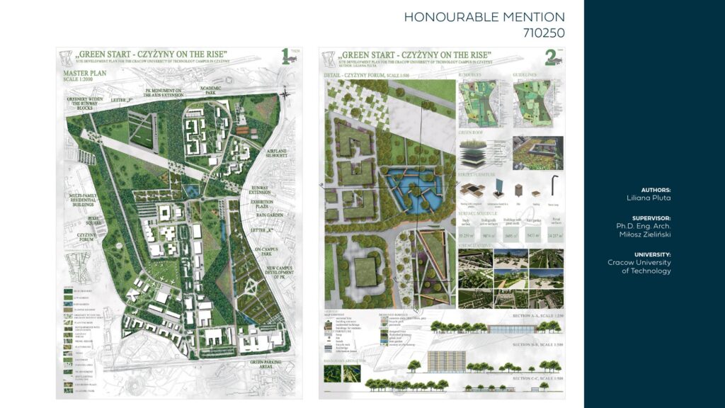“Green Start – Czyżyny on the Rise”, autorka: Liliana Pluta, Politechnika Krakowska. Opieka – dr inż. arch. Miłosz Zieliński.