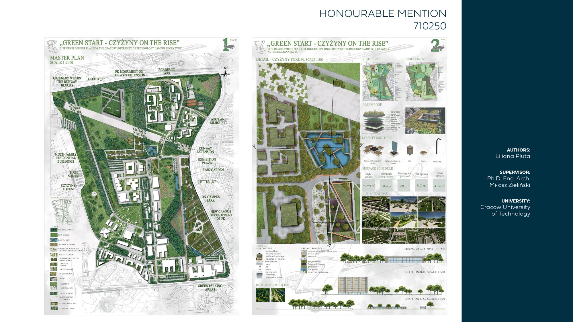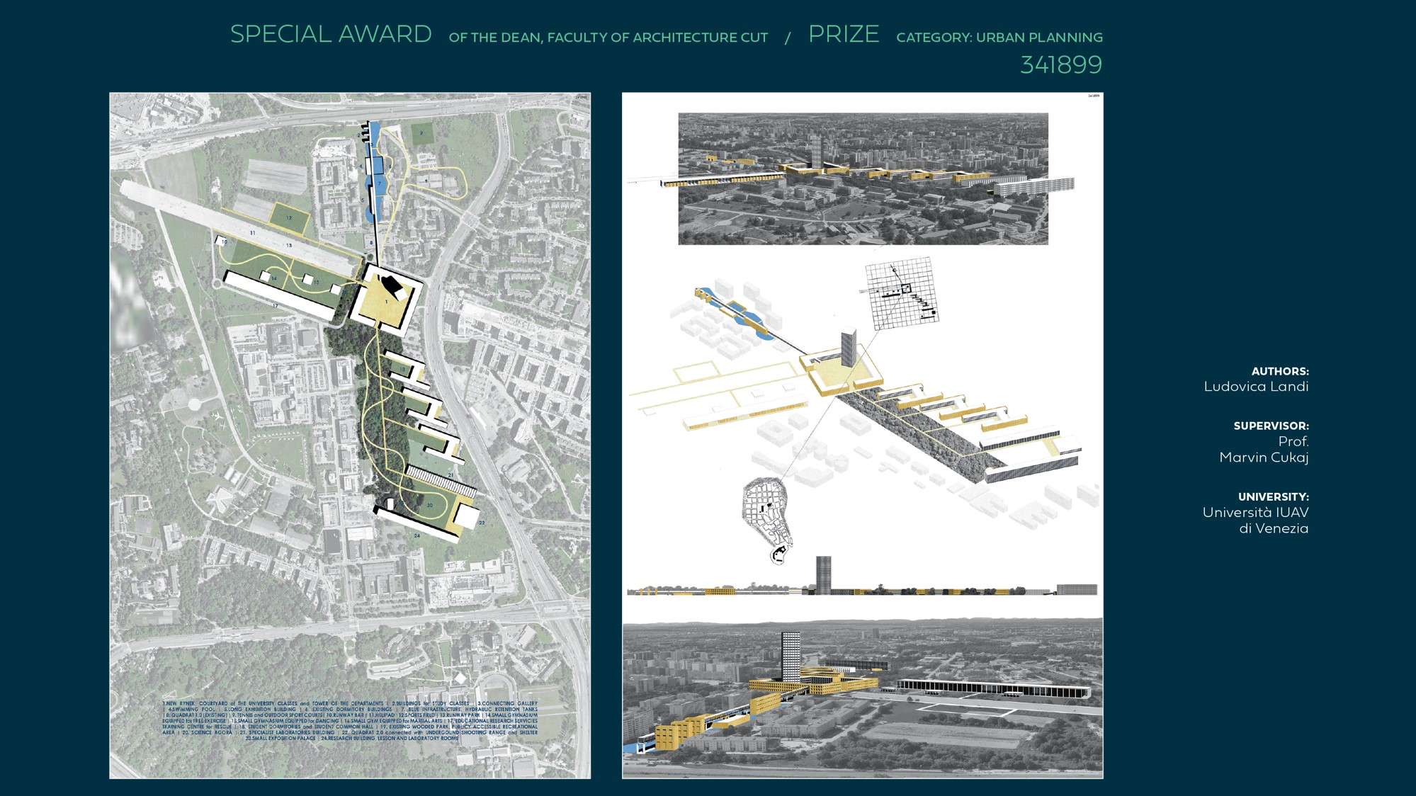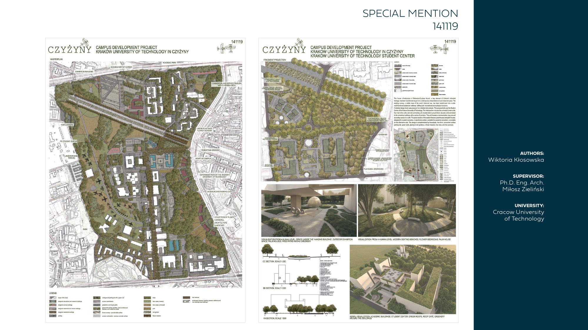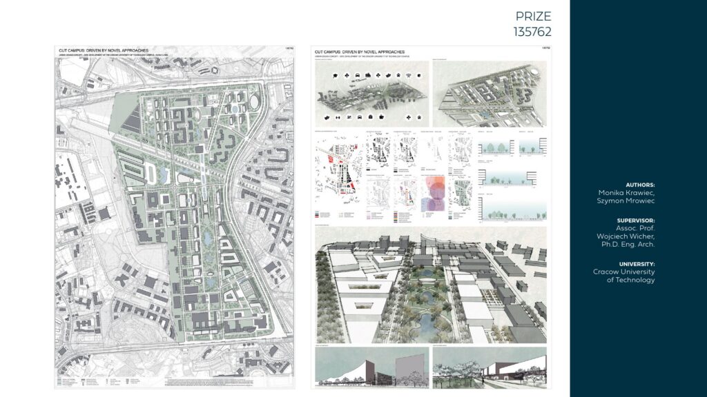 1. “CUT Campus: Urban Design Concept”, autorzy: Monika Krawiec, Szymon Mrowiec, Politechnika Krakowska, Opieka: dr inż. arch. Wojciech Wicher, prof. PK