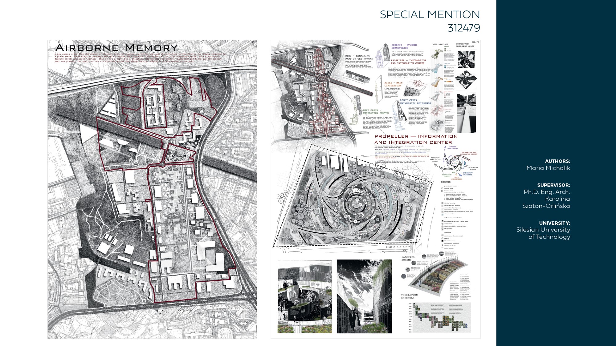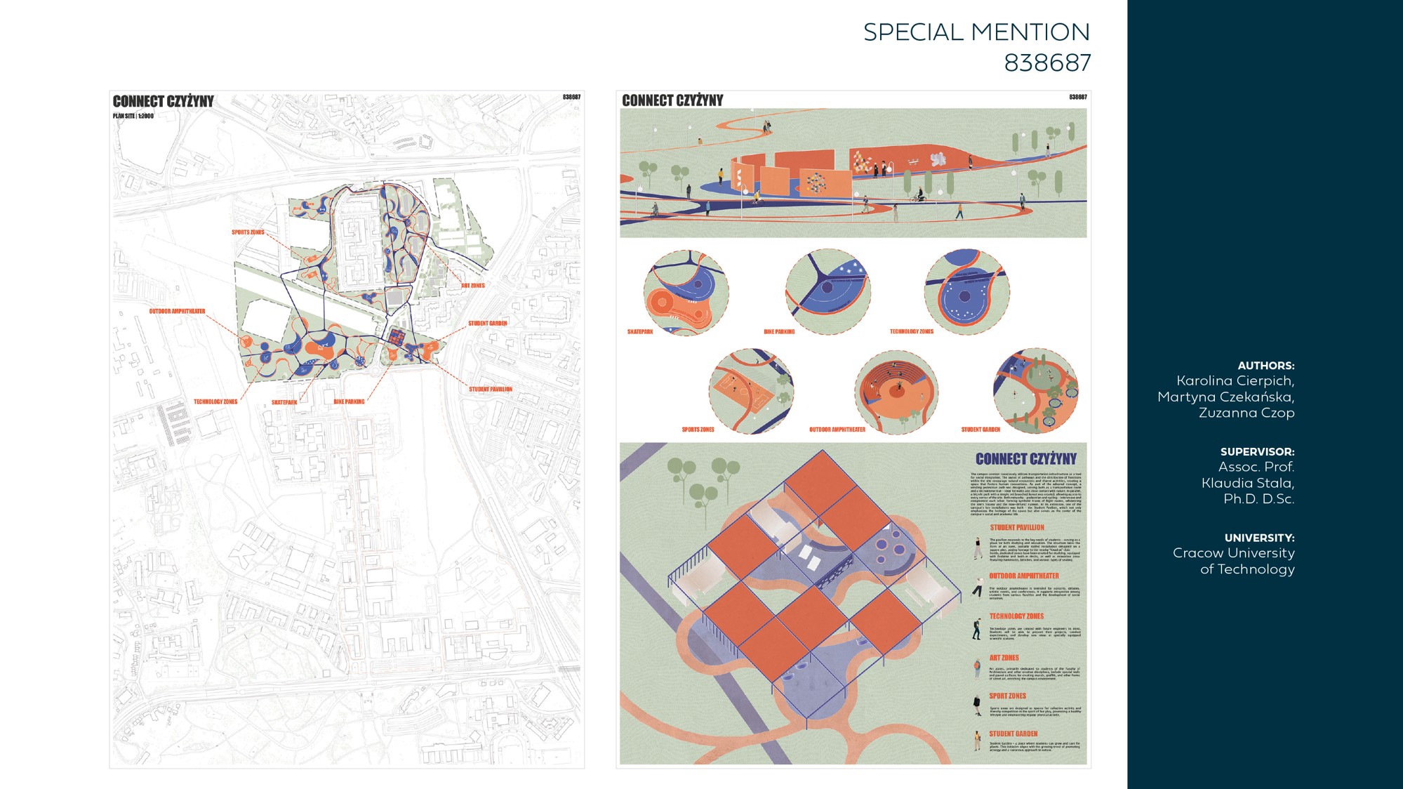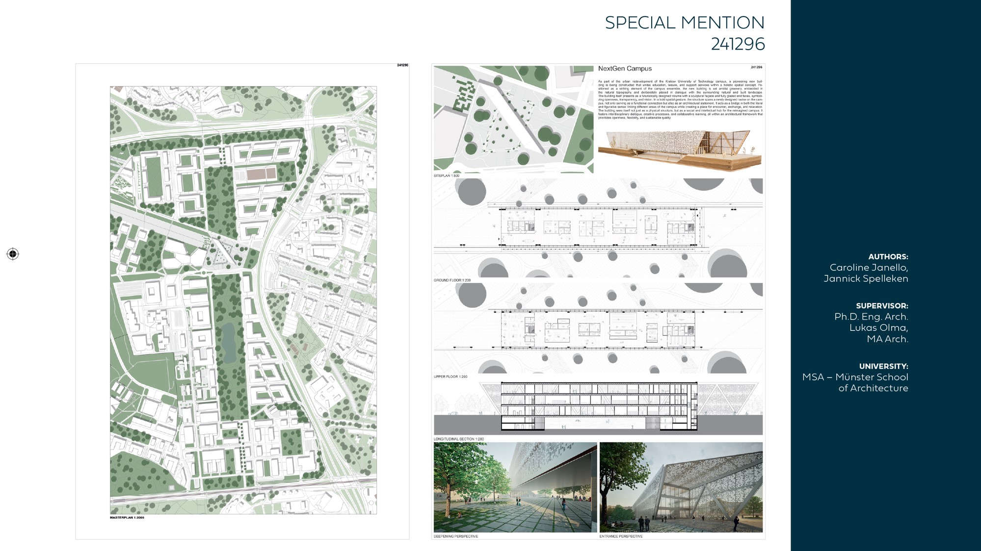 1. “CUT Campus: Urban Design Concept”, autorzy: Monika Krawiec, Szymon Mrowiec, Politechnika Krakowska, Opieka: dr inż. arch. Wojciech Wicher, prof. PK