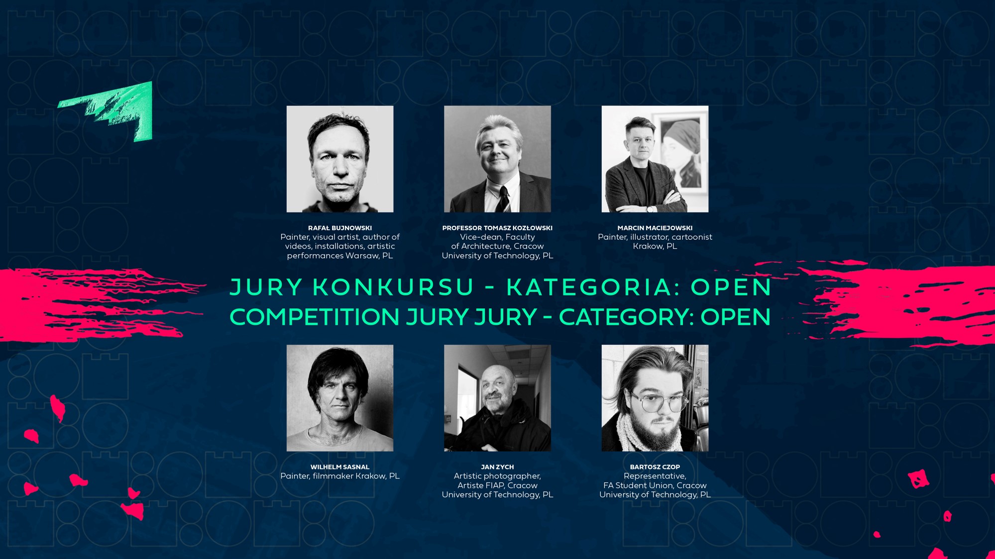 Jurorami kategorii “Open” byli: Rafał Bujnowski, malarz, artysta wizualny, autor filmów, instalacji i występów artystycznych w Warszawie; prof. dr hab. inż. arch. Tomasz Kozłowski, prodziekan Wydziału Architektury PK; Marcin Maciejowski, malarz, ilustrator i rysownik z Krakowa; Wilhelm Sasnal, malarz i filmowiec; Jan Zych, fotograf artystyczny, członek Międzynarodowej Federacji Sztuki Fotograficznej, fotograf Politechniki Krakowskiej i Bartosz Czop, reprezentant Samorządu Studentów Wydziału Architektury PK.