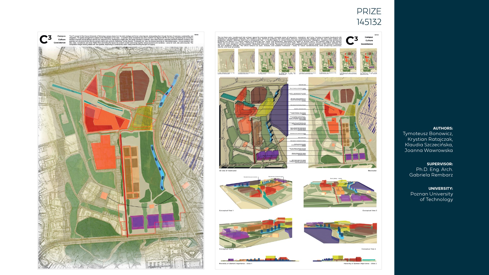 2. “C3 – Campus, Culture, Coexistence”, autorzy: Tymoteusz Bonowicz, Krystian Ratajczak, Klaudia Szczecińska i Joanna Wawrowska, Politechnika Poznańska. Opieka – dr inż. arch. Gabriela Rembarz.