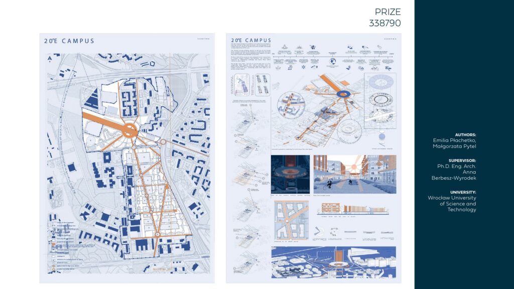 3. “20°E Campus”, autorki: Emilia Płachetko, Małgorzata Pytel, Politechnika Wrocławska, opieka – dr inż. arch. Anna Berbesz-Wyrodek.
