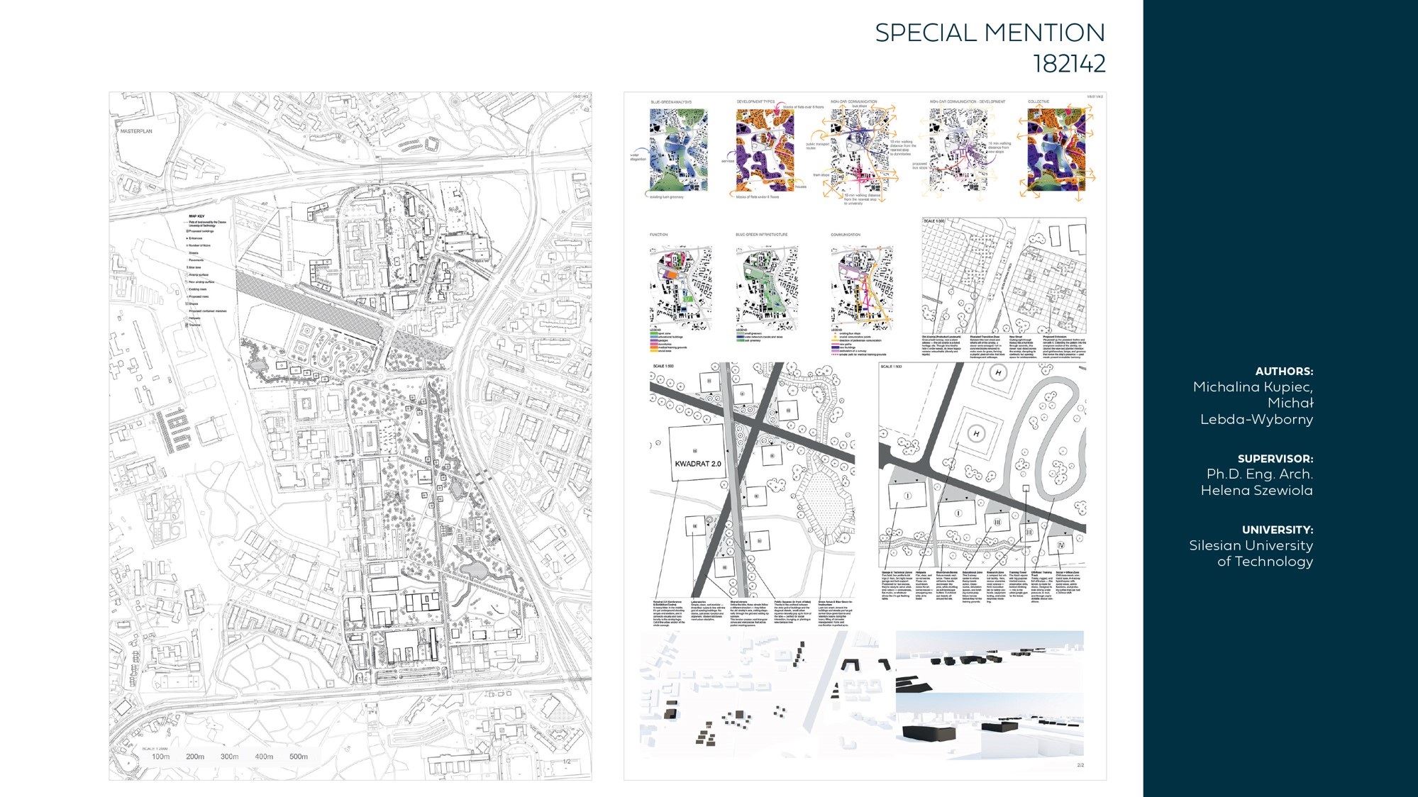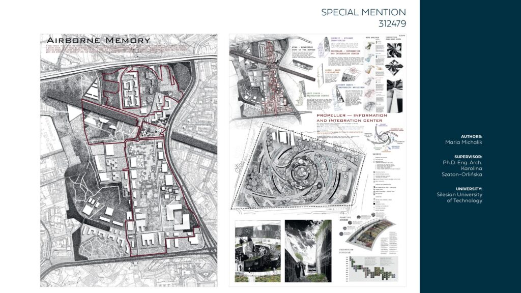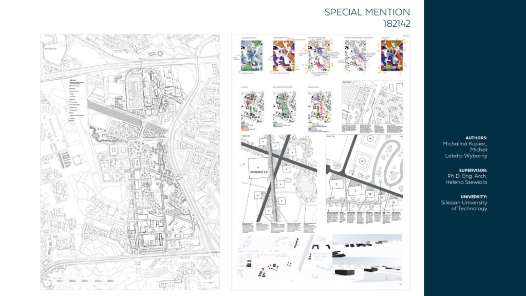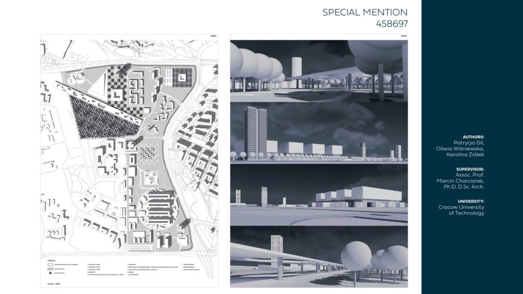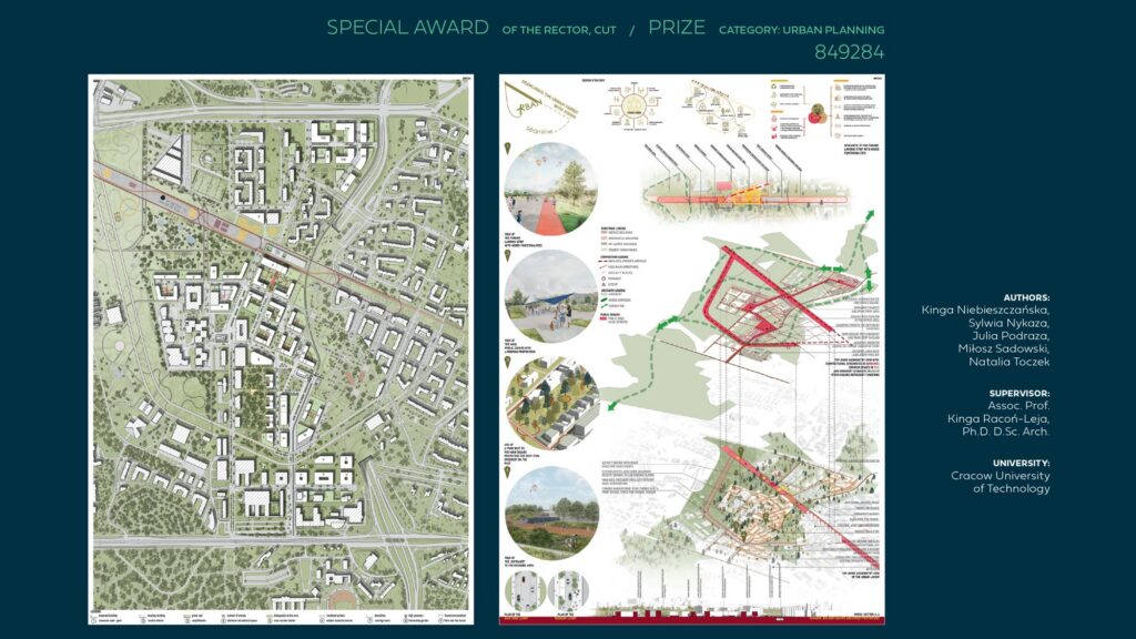 “Urban Plan for the Expansion of Cracow University of Technology”, autorzy: Michalina Kupiec, Michał Lebda-Wyborny, Politechnika Śląska. Opieka: dr inż. arch. Helena Szewiola.