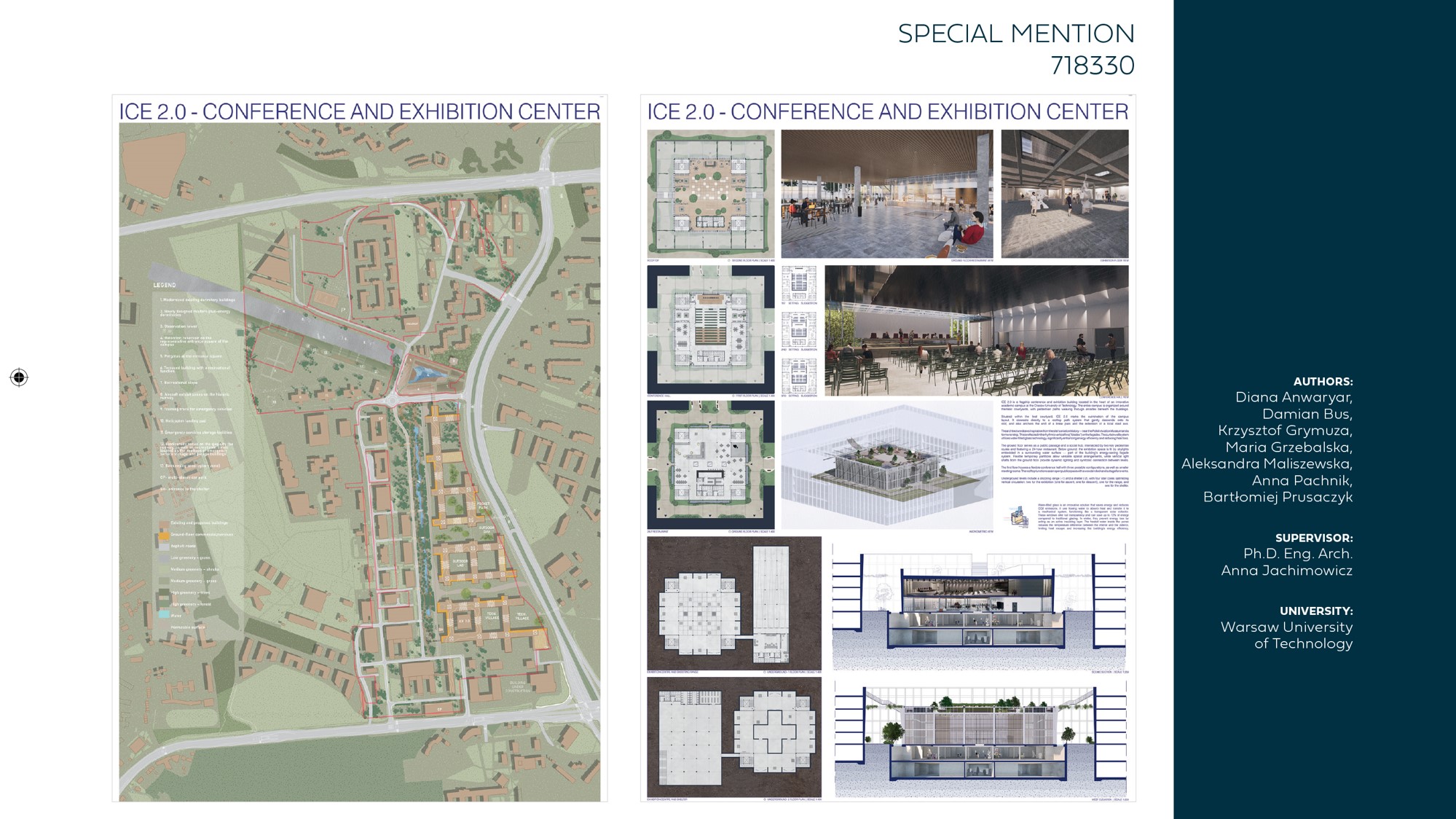 “ICE 2.0 Conference and Exhibition Centre”. Autorzy: Diana Anwaryar, Damian Bus, Krzysztof Grymuza, Maria Grzebalska, Aleksandra Maliszewska, Anna Pachnik, Bartłomiej Prusaczyk, Politechnika Warszawska. Opieka: dr inż. arch. Anna Jachimowicz