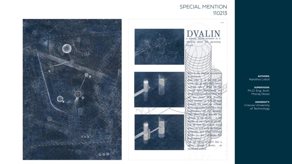 “DVALIN”, autorka Karolina Listoś, Politechnika Krakowska. Opieka – dr inż. arch. Maciej Skaza.