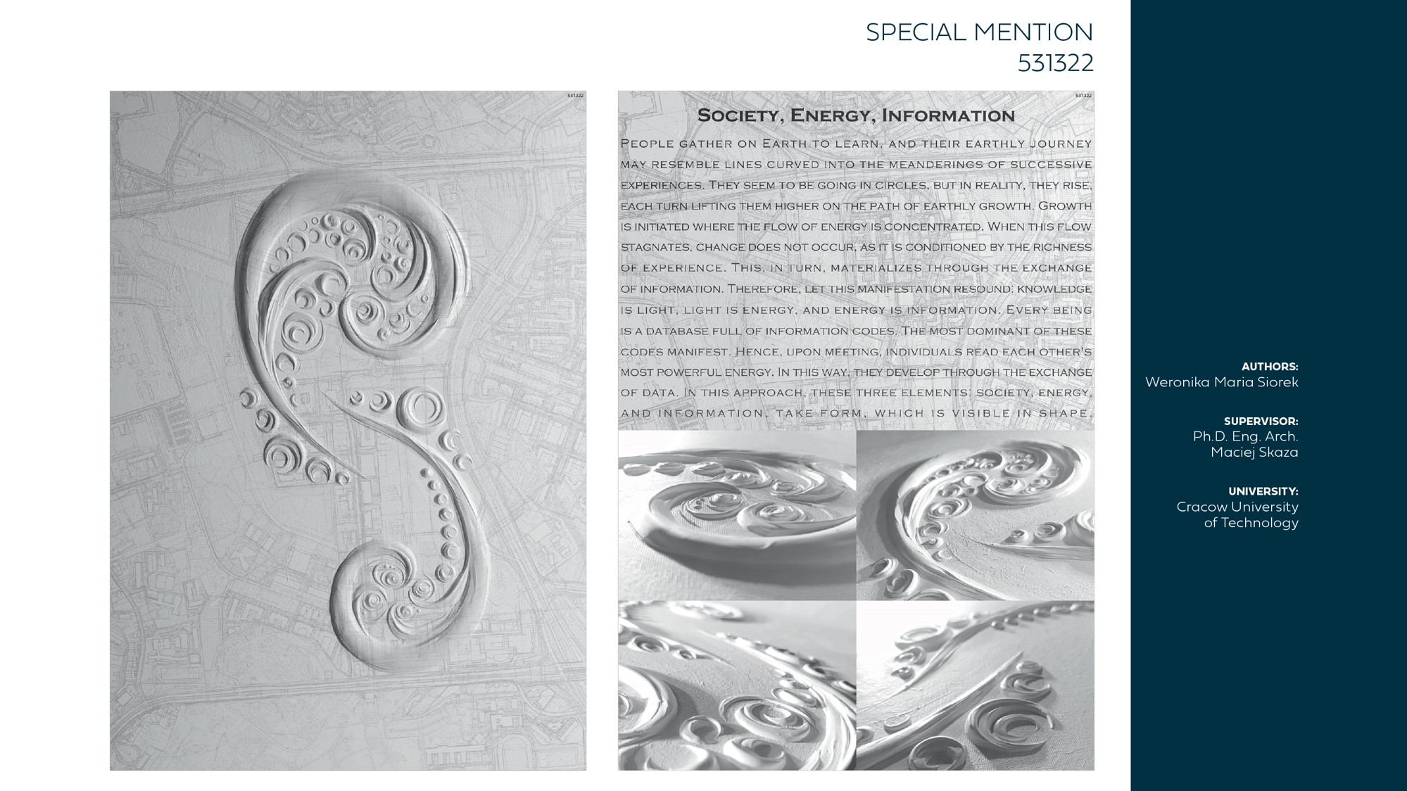 “Society, Energy, Information”, autorka: Weronika Maria Siorek, Politechnika Krakowska. Opieka – dr inż. arch. Maciej Skaza.