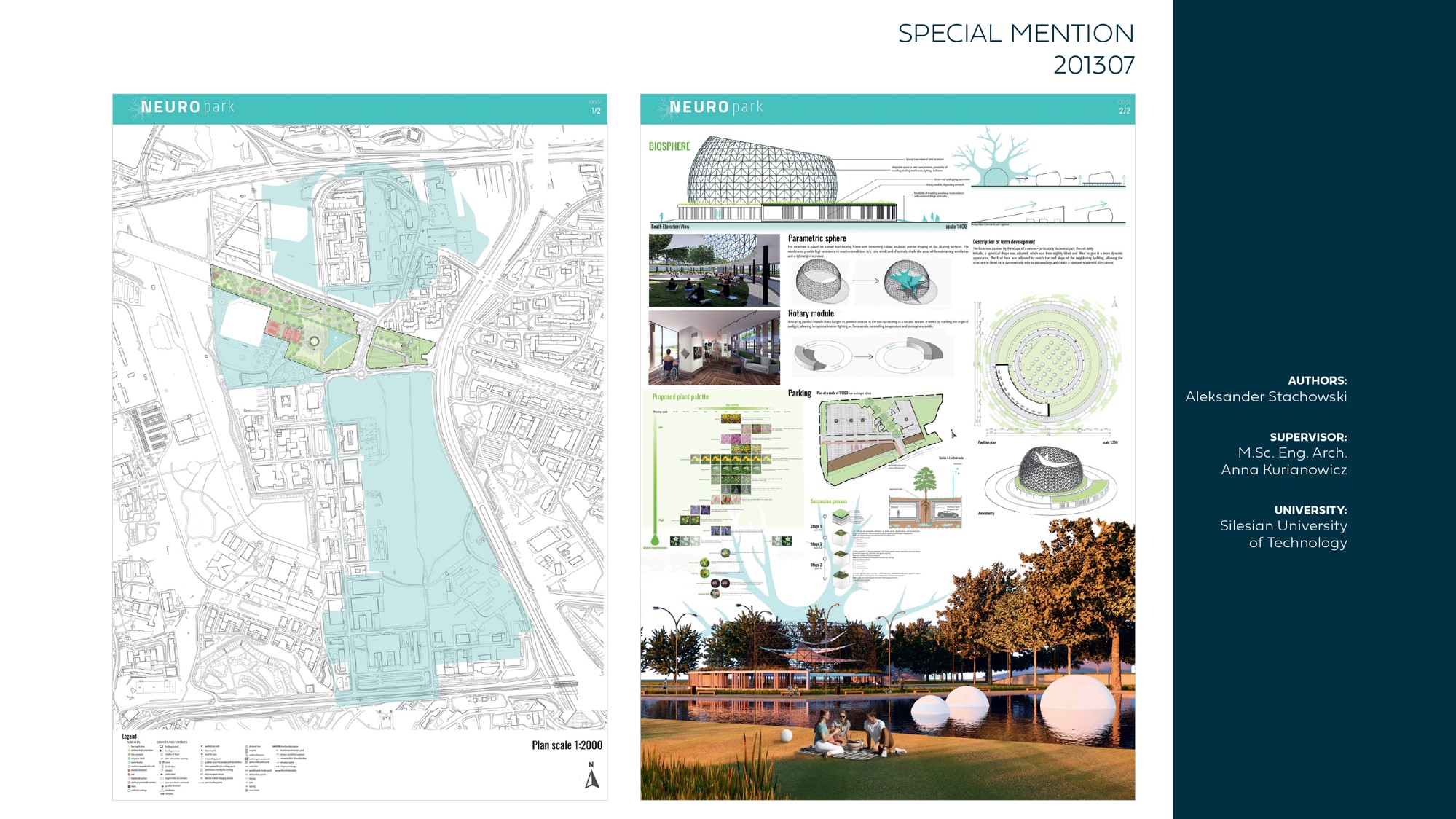 “NEURO park”, autor Aleksander Stachowski, Politechnika Śląska. Opieka – mgr inż. arch. Anna Kurianowicz.