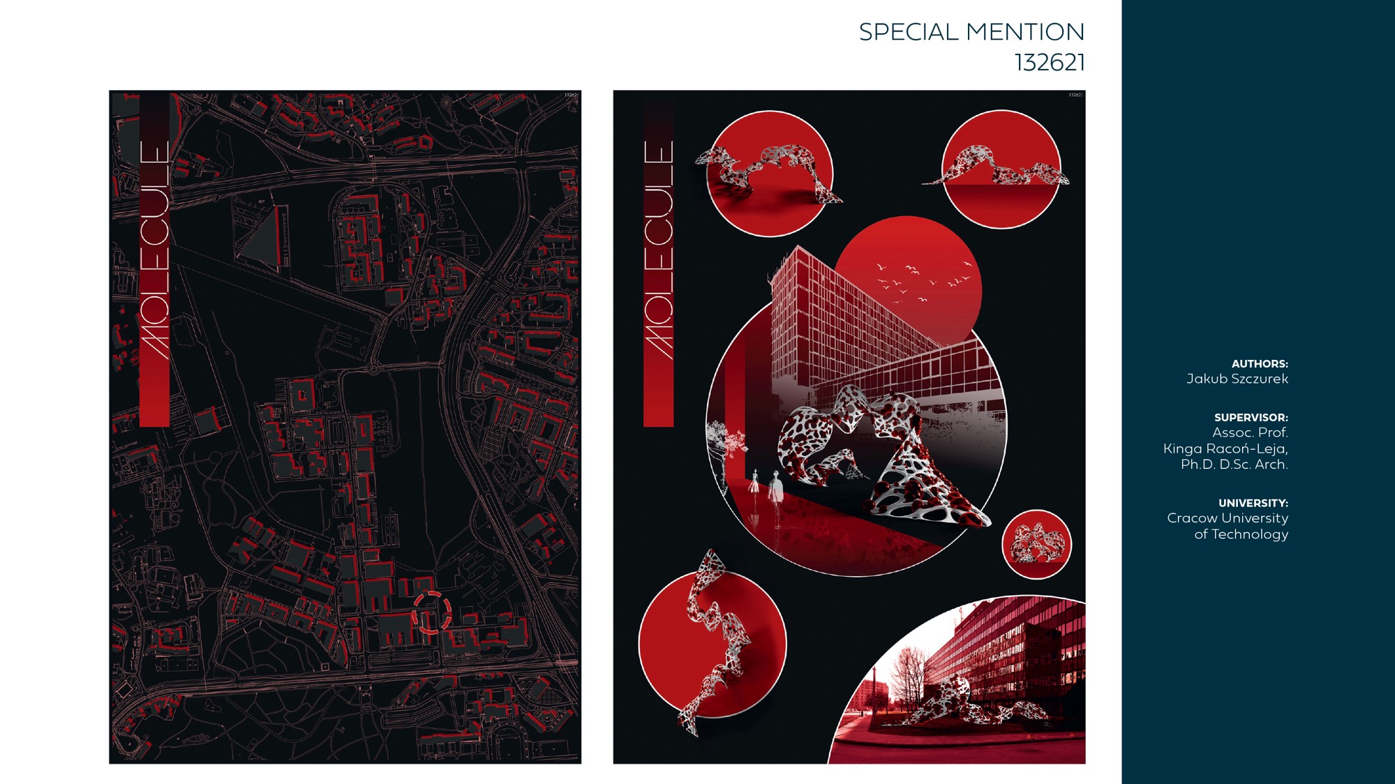 “MOLECULE”, autor Jakub Szczurek, Politechnika Krakowska. Opieka – dr hab. inż. arch. Kinga Racoń-Leja, prof. PK.