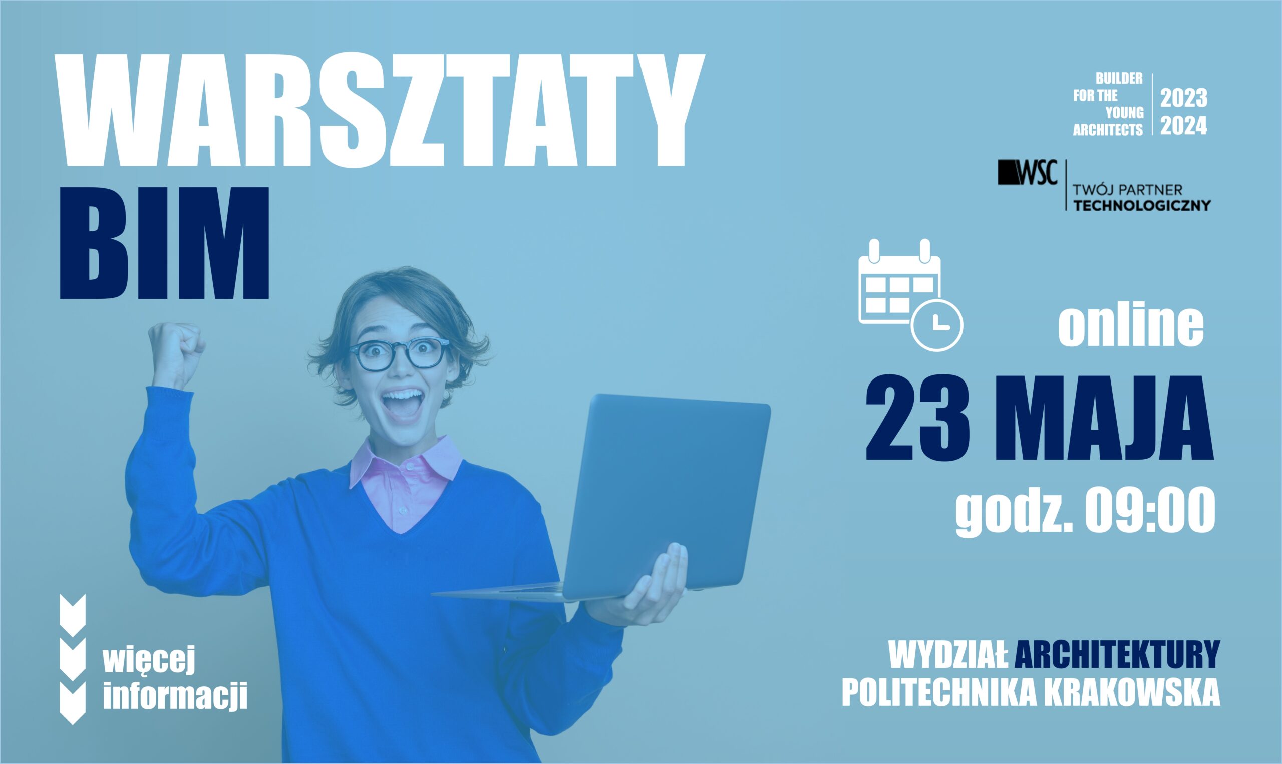 Wydział Architektury Politechniki Krakowskiej oraz WSC Witold Szymanik mają zaszczyt zaprosić na Warsztaty BIM, które odbędą się 23 maja 2024, w godzinach 9:00 – 11:00, online na platformie Zoom.