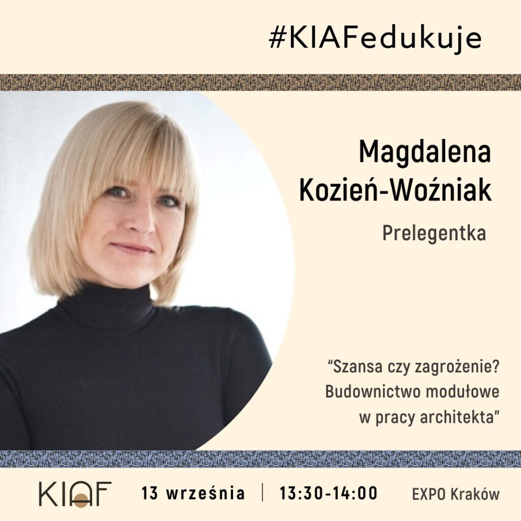 Reprezentująca Wydział Architektury PK – Dziekan Magdalena Kozień-Woźniak, w dniach 12-13 września 2024 roku w EXPO Kraków, udzieliła Honorowego Patronatu nad Targami Architektury KIAF i wzięła udział w panelu dyskusyjnym „Przeszłość w nowym stylu – perspektywy konserwatora i architektów”.