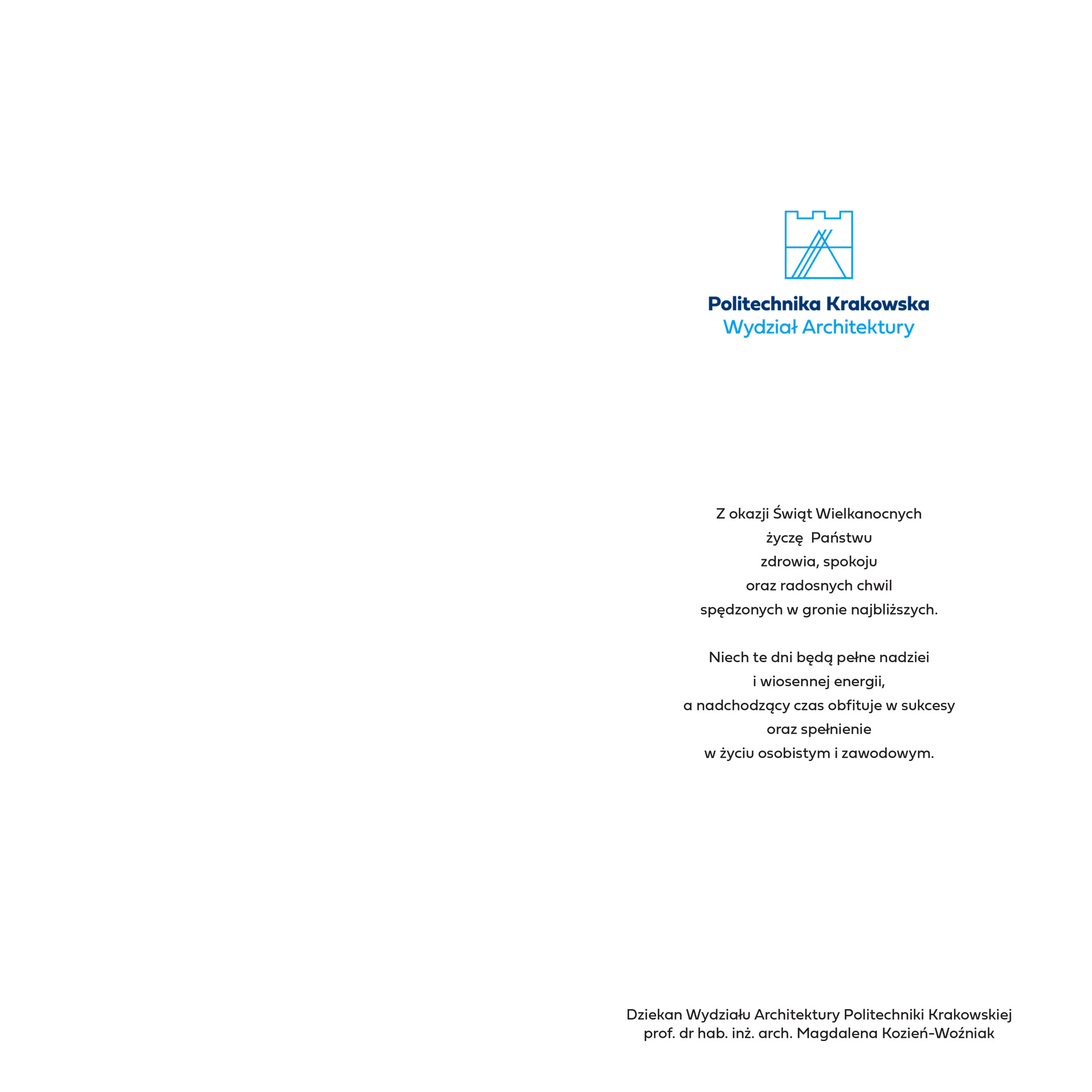 Dziekan Wydziału Architektury prof. dr hab. inż. arch. Magdalena Kozień-Woźniak